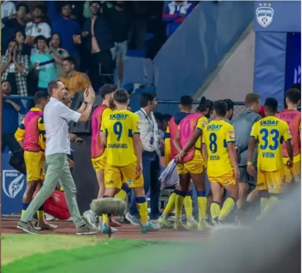 ഇന്ത്യൻ സൂപ്പർ ലീഗ് മത്സരത്തിൽ ബെംഗളൂരു എഫ്‌സിക്കെതിരായ നോക്കൗട്ട് മത്സരം പൂർത്തിയാക്കാതെ മൈതാനം വിട്ട കേരള ബ്ലാസ്റ്റേഴ്സിനും കോച്ചിനും പിഴ ചുമത്തി അഖിലേന്ത്യ ഫുട്ബോൾ ഫെഡറേഷൻ. മൈതാനത്ത് നിന്ന് താരങ്ങളെ തിരികെ വിളിച്ച കോച്ച് ഇവാൻ വുക്കൊമനോവിച്ചിന് പത്ത് മത്സരങ്ങളിൽ നിന്ന് വിലക്കും അഞ്ച് ലക്ഷം രൂപ പിഴയും വിധിച്ചു . കൂടാതെ ടീമിന് നാല് കോടി രൂപയും പിഴ ശിക്ഷയും വിധിച്ചു. സംഭവത്തിൽ പരസ്യമായി മാപ്പ് പറയാനും ബ്ലാസ്റ്റേഴ്സിനോട് അഖിലേന്ത്യ ഫുട്ബോൾ ഫെഡറേഷൻ നിർദേശിച്ചു. വിധിക്കെതിരെ ബ്ലാസ്റ്റേഴ്സിന് അപ്പീൽ പോകാനും അവസരമുണ്ട്.