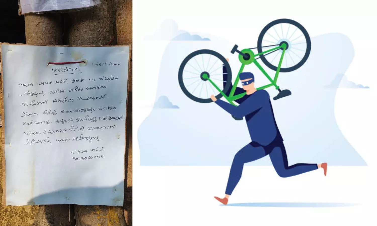 ‘ഞാൻ പവേൽ സമിത്. തേവര എസ്എച്ച് സ്‌കൂളിൽ പഠിക്കുന്നു. രാവിലെ സൈക്കിൾ ഇവിടെ വെച്ചിട്ടാണ് സ്‌കൂളിൽ പോയത്. എന്നാൽ ഇന്നലെ തിരിച്ച് വന്നപ്പോഴേക്കും സൈക്കിൾ നഷ്ടപ്പെട്ടു. ഒരുപാട് മോഹിച്ച് വാങ്ങിയതാണ്. എടുത്ത ചേട്ടന്മാർ തിരിച്ച് നൽകണമെന്ന് അപേക്ഷിക്കുന്നു,’