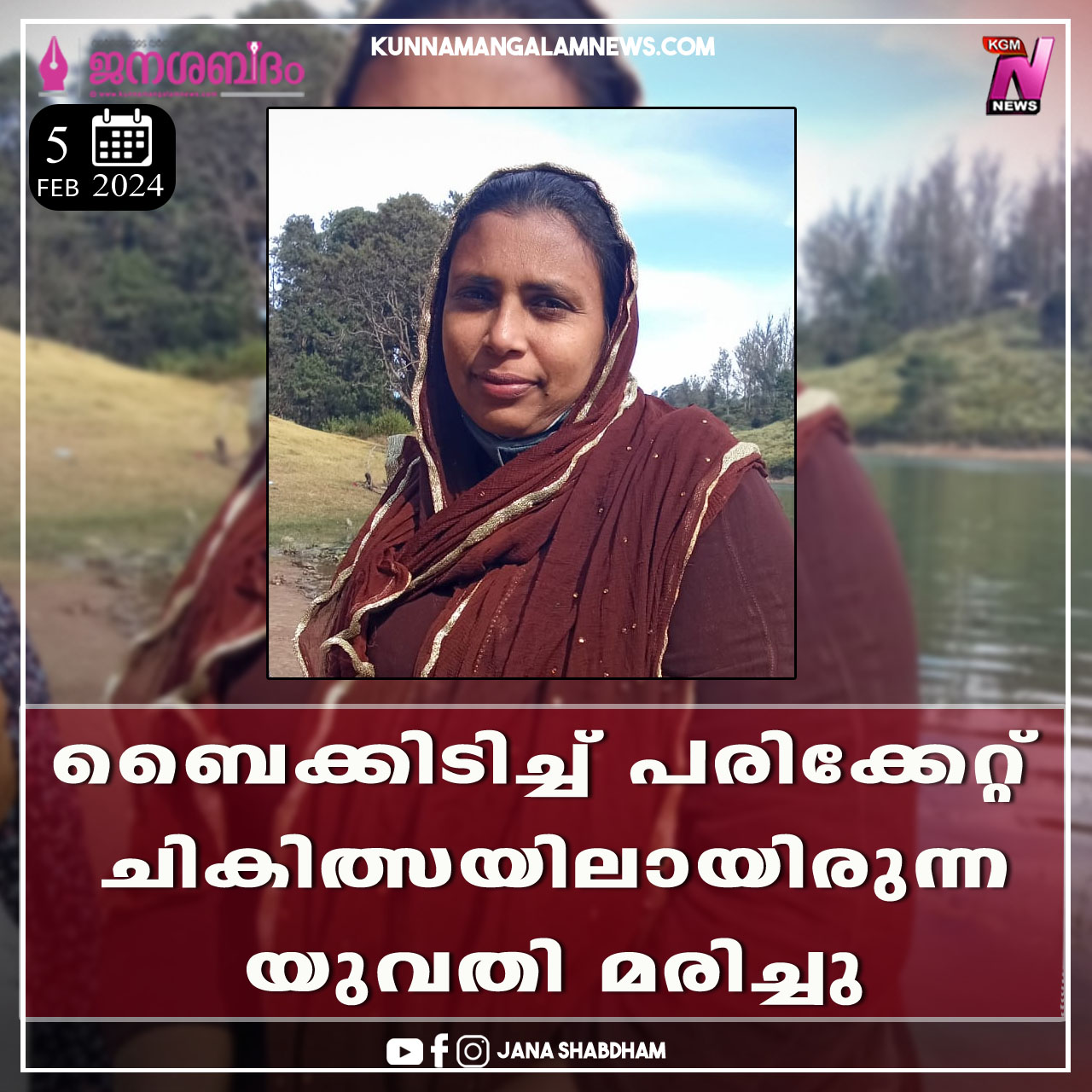 ബൈക്കിടിച്ച് പരിക്കേറ്റ്ചികിത്സയിലായിരുന്ന യുവതി മരിച്ചു