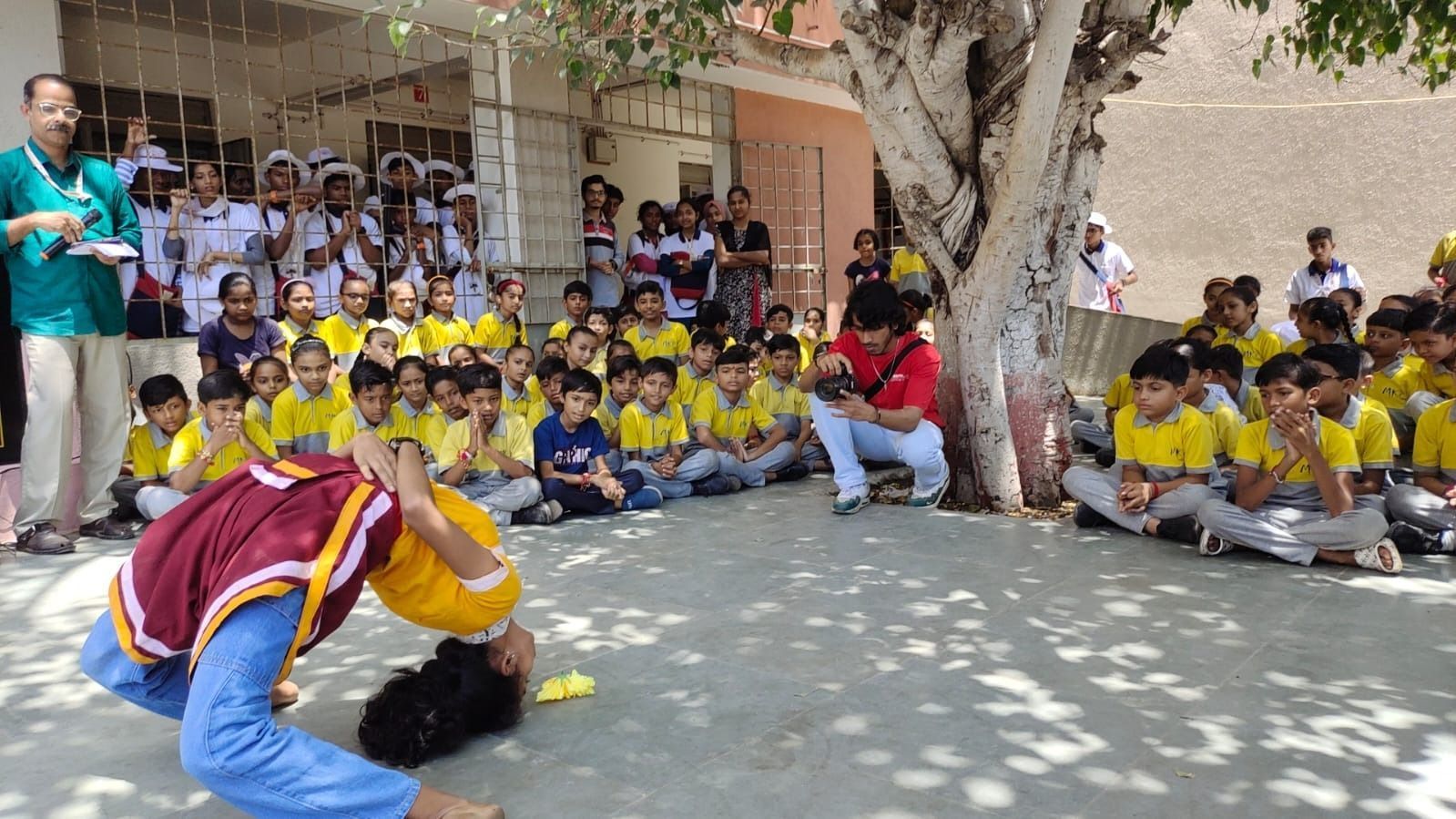 പോർബന്തറിലെ ഗാന്ധിജിയുടെ പേരിലുള്ള പൊതു വിദ്യാലയത്തിലെ കുട്ടികളുമായി സംവദിക്കാൻ യാത്രാ സംഘം വിദ്യാലയത്തിലെത്തി. വിദ്യാലയത്തിൽ കുട്ടികൾ കലാപ്രകടനങ്ങൾ നടത്തി. തീം സോംഗ്, കളരിപ്പയറ്റ്, ജയ്ഹോയുടെ ദൃശ്യാവിഷ്കാരണം എന്നിവ അവതരിപ്പിച്ചു. നൃത്തവും ദേശഭക്തിഗാനങ്ങളും അവതരിപ്പിച്ച് വിദ്യാലയവും യാത്രാ സംഘത്തോടുള്ള സ്നേഹം പ്രകടിപ്പിച്ചു.