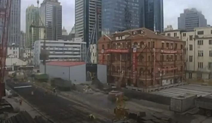 3,800-ton century-old building slowly "walking" in Shanghaipic.twitter.com/fCeTbKpR7M