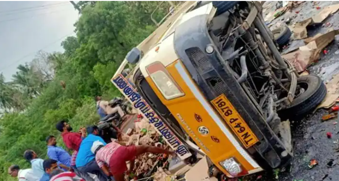 കേരളത്തിൽ നിന്ന് മദ്യവുമായി പോയ വാഹനം മധുരയിൽ അപകടത്തിൽ പെട്ടു ; മദ്യമെടുക്കാൻ ആളുകളുടെ തിരക്ക്