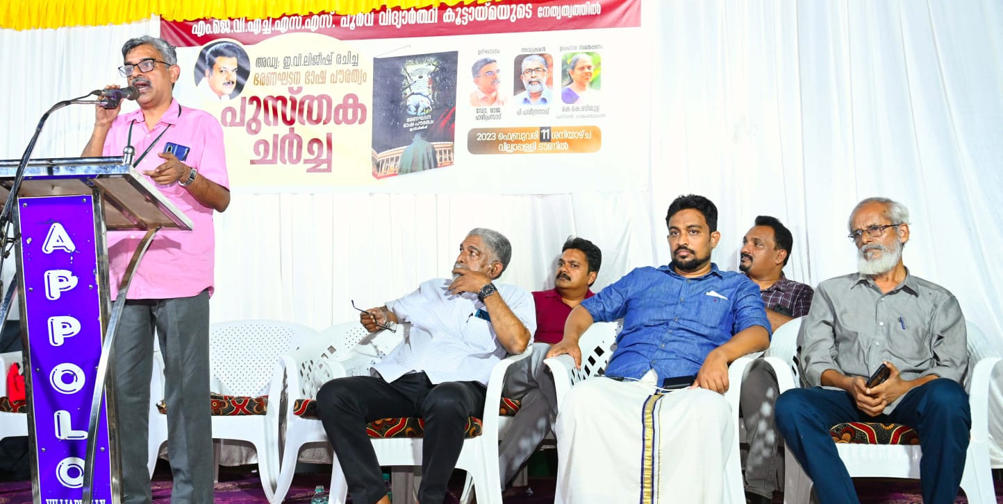 അഡ്വ: ഇ.വി.ലിജീഷ് രചിച്ച ഭരണഘടന ഭാഷ പൗരത്വം എന്ന പുസ്തകത്തെക്കുറിച്ച് എം.ജെ. ഹൈസ്കൂൾ പൂർവ വിദ്യാർത്ഥി കൂട്ടായ്മ സംഘടിപ്പിച്ച പുസ്തക ചർച്ച ഉദ്ഘാടനം ചെയ്ത് സംസാരിക്കുകയായിരുന്നു അദ്ദേഹം.പി.ഹരീന്ദ്രനാഥ് അധ്യക്ഷത വഹിച്ചു വില്യാപ്പള്ളി ഗ്രാമപഞ്ചായത്ത് പ്രസിഡണ്ട് കെ.കെ.ബിജുള, ആർ.ബൽറാം, പ്രജീഷ് തത്തോത്ത്, ബഷീർ മാണിക്കോത്ത്, അഡ്വ: ഇ.വി.ലിജീഷ് പ്രസംഗിച്ചു.എം.പി.ഷാജഹാൻ സ്വാഗതവും, ഹരീഷ് പഞ്ചമി നന്ദിയും പറഞ്ഞു.