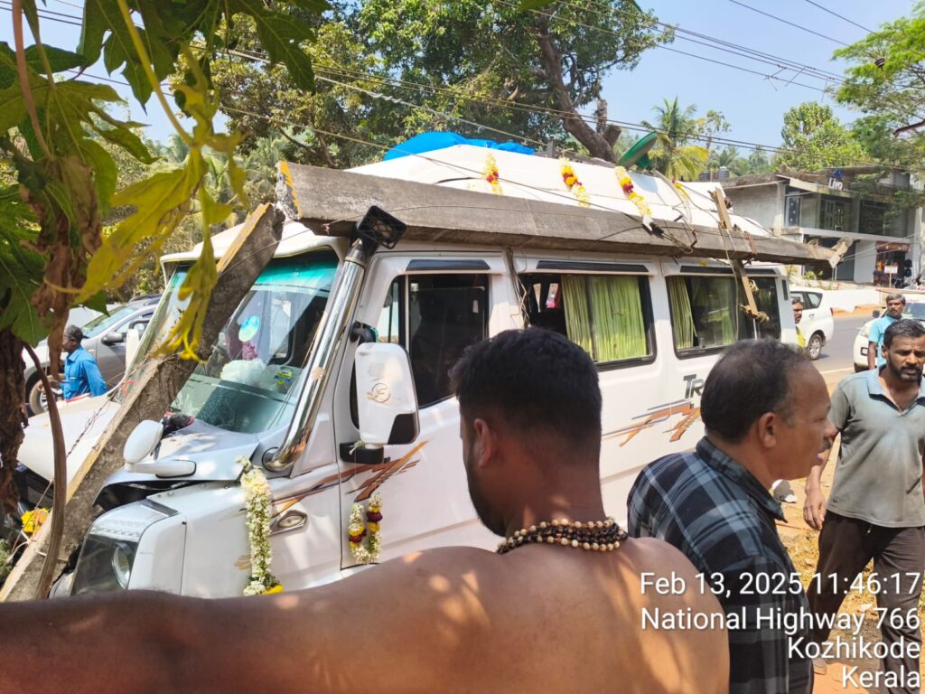 വാഹനം ഓടിക്കുന്നതിനിടെ ഡ്രൈവർക്ക് ദേഹാസ്വാസ്ഥ്യം അനുഭവപ്പെട്ടതോടെ വാഹനം അപകടത്തിൽപ്പെട്ടു. കർണാടകയിൽ നിന്ന് ശബരിമല ദർശനം നടത്തിവരുന്ന അയ്യപ്പഭക്തരുടെ വാഹനമാണ് അപകടത്തിൽപ്പെട്ടത്.കുന്ദമംഗലം ചൂലാം വയലിന് സമീപം ട്രാവലർ നിയന്ത്രണം വിട്ട് ഇലക്ട്രിക് പോസ്റ്റിൽ ഇടിക്കുകയായിരുന്നു. കർണാടക മണ്ഡ്യ സ്വദേശി പ്രമോദ് ആണ് ഡ്രൈവർ.വാഹനം ഓടിക്കുന്നതിനിടെ ഇദ്ദേഹത്തിന് അപസ്മാരം ഉണ്ടാകുകയായിരുന്നു. ഇതോടെ വാഹനത്തിന്റെ നിയന്ത്രണം നഷ്ടപ്പെടുകയും ഇലക്ട്രിക് പോസ്റ്റിൽ ഇടിക്കുകയായിരുന്നു. വാഹനത്തിന്റെ മുൻവശം ഭാഗികമായി തകർന്നുവാഹനത്തിൻറെ മുൻവശം ഭാഗികമായി തകർന്നു.