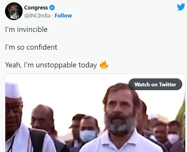 ന്യൂഡൽഹി∙ കർണാടക നിയമസഭാ തിരഞ്ഞെടുപ്പിലെ മുന്നേറ്റത്തിനു പിന്നാലെ, രാഹുൽ ഗാന്ധി അജയ്യനാണെന്ന പ്രഖ്യാപനവുമായി കോൺഗ്രസ്. ട്വിറ്ററിൽ പോസ്റ്റ് ചെയ്ത ലഘു കുറിപ്പിലൂടെയാണ്, രാഹുൽ ഗാന്ധിയെ പുകഴ്ത്തി കോൺഗ്രസിന്റെ ട്വീറ്റ്. ‘ഞാൻ അജയ്യനാണ്. എനിക്ക് കടുത്ത ആത്മവിശ്വാസമുണ്ട്. അതെ, ഇന്ന് എന്നെ തടയാനാകില്ല’ – ഇതായിരുന്നു ട്വീറ്റ്.