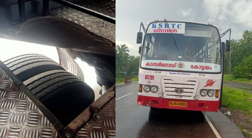 കെഎസ്ആർടിസി ബസിൽ തീ പിടുത്തം. കോട്ടയം-കാസർഗോഡ് മിന്നൽ ബസ് ആണ് അപകടത്തിൽപ്പെട്ടത്. കോഴിക്കോട് വടകരയിലാണ് അപകടം. തീപിടിച്ച് ടയർ പൊട്ടുകയായിരുന്നു. ബസിലെ യാത്രക്കാർ സുരക്ഷിതരാണ്. മുപ്പതോളം യാത്രക്കാരായിരുന്നു ബസിൽ ഉണ്ടായിരുന്നത്. ജീവനക്കാരുടെ സമയോചിതമായ ഇടപെടലിൽ ആണ് വൻ ദുരന്തം ഒഴിവായത്.