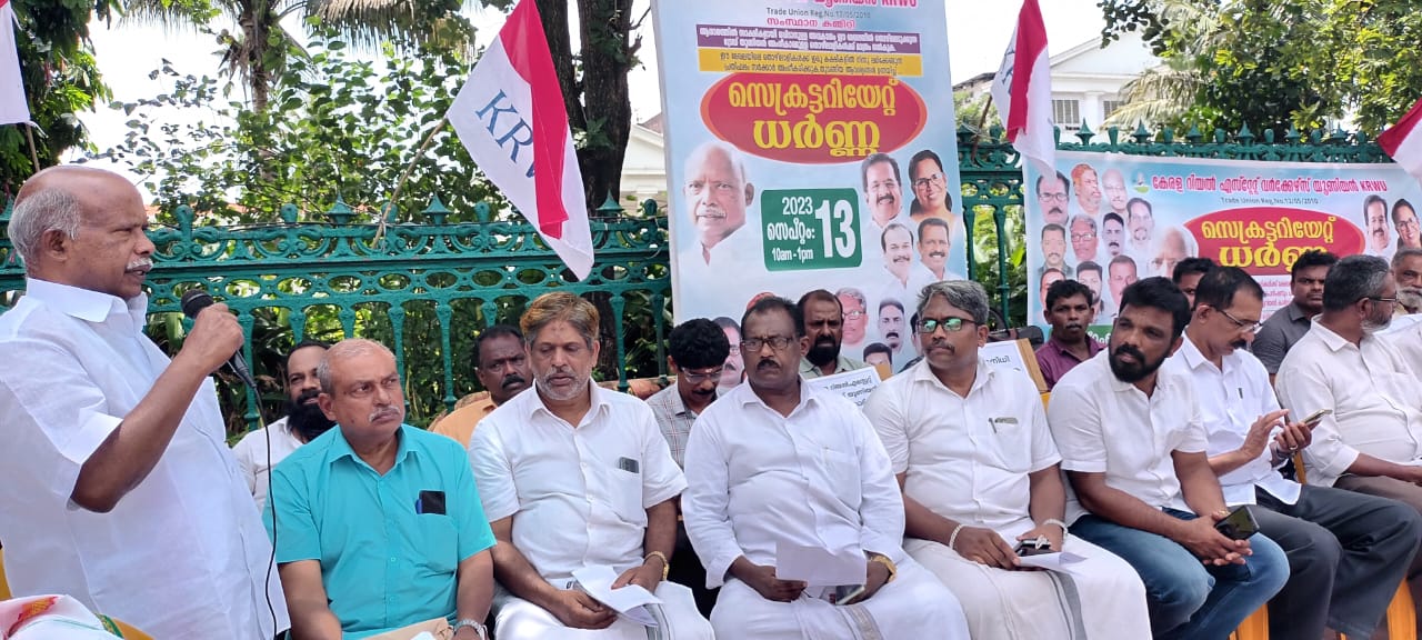 അതിനായി നടത്തിയ ധർണാസമരം കേരള കരകൗശലവികസന കോർപ്പറേഷൻ ചെയർമാൻ പി .രാമഭദ്രൻ ഉദ്ഘാടനം ചെയ്തു .കേരള റിയൽ എസ്റ്റേറ്റ് വർക്കേഴ്സ് യൂണിയൻ സംസ്ഥാന പ്രസിഡൻ്റ് പി .വി .അമ്മത്, അധ്യക്ഷനായിരുന്നൂ.സംസ്ഥാന ജോ.സെക്രട്ടറി സുരേഷ് ബാബു സ്വാഗതം പറഞ്ഞു.എം. എൽ.എ മാരായ രമേശ് ചെന്നിത്തല , പി.ഉബൈദുള്ള എം വിൻസെൻ്റ് എന്നിവർ ചടങ്ങിൽ സംസാരിച്ചു.ജനറൽ സെക്രട്ടറി എം. കെ അബ്ദുൾ സലാം മുഖ്യ പ്രഭാഷണംനടത്തി.സംസ്ഥാന വൈസ്.. പ്രസിഡണ്ട് അജി രാമസ്വാമി, ജില്ലാ ഭാരവാഹികളായ എൻ.ഉദയകുമാർ, ഷാജു രാജേഷ്, മോഹൻ പിള്ള , പ്രകാശൻ ,കെ.പി.ബാബു,സതീശ് ചന്ദ്ര പണിക്കർ,വി. കെ.അച്ചുതൻ തുടങ്ങിയവർ ധർണ്ണക്ക് അഭിവാദ്യമർപ്പിച്ച് സംസാരിച്ചു.സംസ്ഥാന ട്രഷറർ ടി.പി.കൃഷ്ണൻ നന്ദി പറഞ്ഞു.