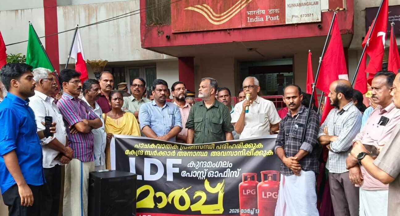 പാചക വാതക പ്രതിസന്ധി പരിഹരിക്കുക കേന്ദ്ര സർക്കാർ അനാസ്ഥ അവസാനിപ്പിക്കുക തുടങ്ങിയ മുദ്രാവാക്യങ്ങൾ ഉയർത്തി എൽഡിഎഫ് കുന്ദമംഗലം നിയോജകമണ്ഡലം കമ്മറ്റി നേതൃത്വത്തിൽ കുന്ദമംഗലം പോസ്റ്റോഫീസ് മാർച്ചും ധർണയും സംഘടിപ്പിച്ചു. അഡ്വ: പിടിഎ റഹീം എംഎൽഎ ഉദ്ഘാടനം ചെയ്തു. പശ്ചിമേഷ്യയിലെ യുദ്ധത്തിൻ്റെ സാഹചര്യത്തിൽ രാജ്യത്ത് ഇന്ധനക്ഷാമം അനുദിനം വർദ്ധിച്ചു വരുമ്പോൾ വിഷയങ്ങൾ മനസ്സിലാക്കി പരിഹാരം കണ്ടെത്താത്ത കേന്ദ്ര സർക്കാർ നടപടി പ്രതിഷേധാർഹമാണെന്നും, ഗാർഹിക ഉപയോഗം പോലും ബുദ്ധിമുട്ടാവുന്ന അവസ്ഥയിലേക്ക് നാട് മാറുന്നത് കാണാത്ത നടപടി പ്രതിഷേധാർഹമാണെന്നും എം എൽ എ അഭിപ്രായപ്പെട്ടു.