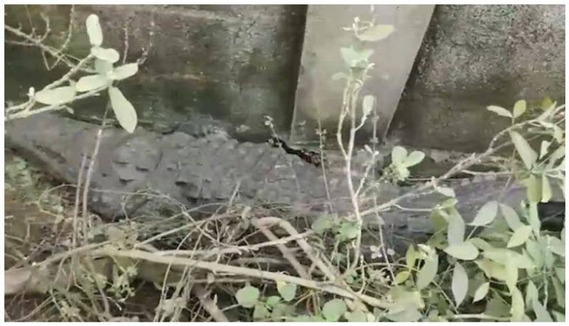 ചെന്നൈയിൽ വീണ്ടും റോഡരികിൽ മുതല: വനം വകുപ്പ് ജീവനക്കാരെത്തി മുതലയെ വലയ്ക്കുള്ളിലാക്കി
