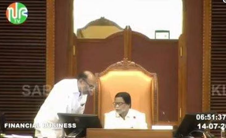 ‘ശരിക്കും അത് പറയാന്‍പാടില്ലാത്തതാണ്, എന്താ ചെയ്യേണ്ടത്, സ്പീക്കര്‍ വരുമോ’;ചെയറിലെ സംഭാഷണം സഭാ ടിവിയിലൂടെ പുറത്ത്