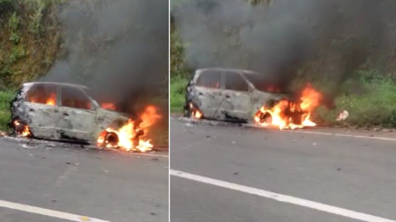 ദേശീയ പാതയിൽ ഓടികൊണ്ടിരുന്ന കാറിന് തീപിടിച്ചു,യാത്രക്കാർ രക്ഷപ്പെട്ടു
