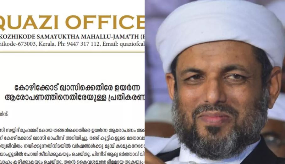 കോഴിക്കോട് ഖാസിക്കെതിരെ പീഡനക്കേസ്;വ്യാജ പരാതി ആരോപണം തള്ളി ഖാസിയുടെ ഓഫീസ്