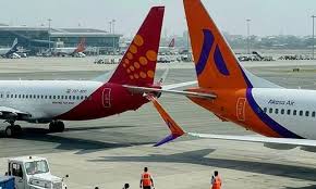 ന്യൂഡല്‍ഹി: ഡൽഹി വിമാനത്താവളത്തിൽ സ്പൈസ് ജെറ്റ്, ആകാശ എയർ വിമാനങ്ങൾ തമ്മിൽ കൂട്ടിയിടിച്ച സംഭവത്തിൽ പൈലറ്റുമാർക്ക് സസ്‌പെൻഷൻ. അപകടത്തിന് കാരണക്കാരായ സ്പൈസ് ജെറ്റ് വിമാനത്തിലെ പൈലറ്റ് ഇൻ കമാൻഡിനെയും കോ-പൈലറ്റിനെയും അന്വേഷണവിധേയമായി ഡ്യൂട്ടിയിൽ നിന്ന് മാറ്റിനിർത്തി.
