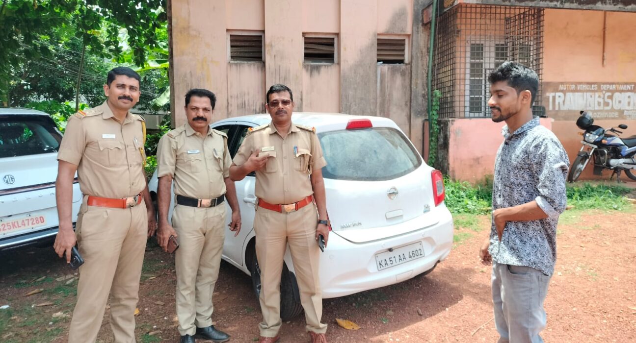 പെർമിറ്റ്,ഇൻഷുറൻസ്,ഫിറ്റ്നസ്, ടാക്സ് എന്നിവ ഇല്ല; വ്യാജനമ്പർ ബോർഡ് വച്ച് സർവീസ് നടത്തിയ കാർ മുണ്ടിക്കൽ താഴത്ത് വെച്ച് പിടിച്ചെടുത്തു