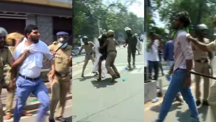 പ്രവ‍ർത്തകർ അക്രമാസക്തരായതോടെയാണ് പൊലീസ് ലാത്തി വീശിയത്. പിന്നാലെ കണ്ണീ‍ർ വാതക ഷെല്ലുകളും പ്രയോഗിച്ചു. എന്നാൽ പ്രവർത്തകർ സംഘ‍ർഷത്തിൽ നിന്ന് പിന്മാറിയില്ല. ഇതോടെ പൊലീസ് ഗ്രനേഡും പ്രയോഗിക്കുകയായിരുന്നു.