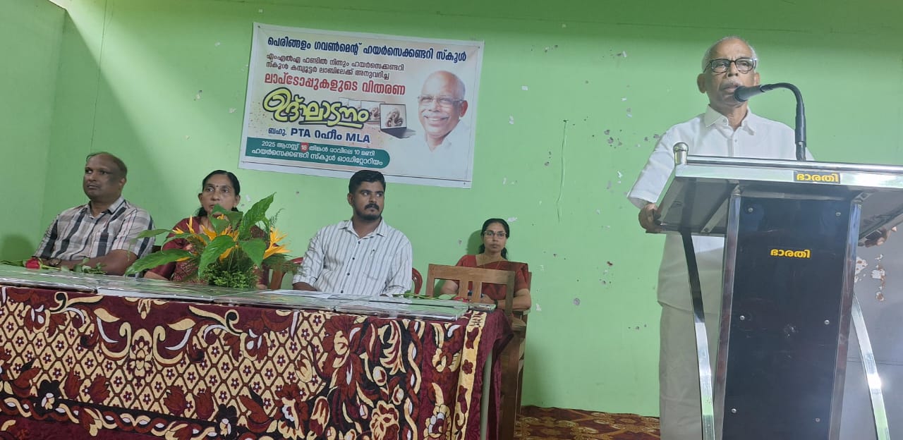 പെരിങ്ങൊളം ഗവ. ഹയർ സെക്കൻ്ററി സ്കൂൾ ലാപ്ടോപ്പുകളുടെ സമർപ്പണം പി.ടി.എ റഹീം എംഎൽഎ നിർവഹിച്ചു