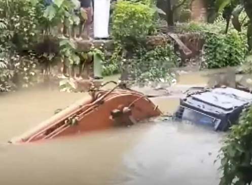 വൈകിട്ട് അഞ്ചുമണിയോടെ ജോലി അവസാനിപ്പിച്ച് യന്ത്രം തോട്ടില്‍ തന്നെ നിറുത്തി തൊഴിലാളികള്‍ മടങ്ങി. എന്നാല്‍ ശക്തമായ മഴയെ തുടര്‍ന്ന് തോട് നിറഞ്ഞ് യന്ത്രത്തിന്റെ മുകള്‍ഭാഗം വരെ വെള്ളം എത്തി. തോട്ടിലെ വെള്ളം വറ്റാതെ മണ്ണു മാന്തിയന്ത്രം പുറത്തെടുക്കാനാകാത്ത അവസ്ഥയാണ്.