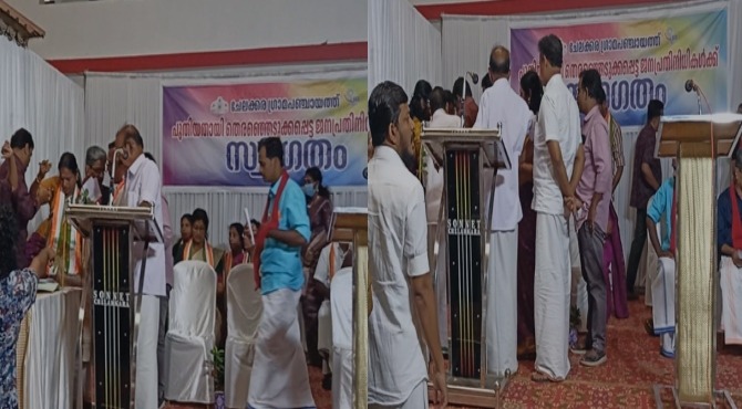 അതേസമയം, ആലപ്പുഴ കണ്ടല്ലൂർ പഞ്ചായത്തിൽ സത്യപ്രതിജ്ഞ ചടങ്ങിനിടെ സിപിഐഎം പ്രവർത്തകൻ കുഴഞ്ഞുവീണ് മരിച്ചു. കണ്ടല്ലൂർ സ്വദേശി മനോഹരൻ പിള്ളയാണ് മരിച്ചത്. മുദ്രാവാക്യം വിളിച്ചതിന് ശേഷം കുഴഞ്ഞുവീഴുകയായിരുന്നു.