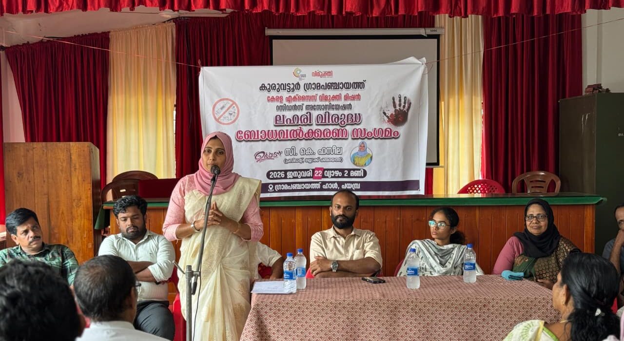 ഗ്രാമ പഞ്ചായത്ത് പ്രസിഡണ്ട് അഡ്വ:നൂറുദ്ധീൻ അധ്യക്ഷത വഹിച്ചു. ക്ഷേമ കാര്യ സ്റ്റാൻഡിംഗ് കമ്മിറ്റി ചെയർപേഴ്സൺ സൗദ ഹസൻ, പഞ്ചായത്ത് സെക്രട്ടറി ഗോപികൃഷ്ണൻ, ബ്ലോക്ക് പഞ്ചായത്ത് മെമ്പർ ടി.സി മുഹമ്മദ് മാസ്റ്റർ, പഞ്ചായത്ത് അംഗങ്ങളായ മോഹനൻ അരീക്കര, ഷൈജു പറമ്പടം തുടങ്ങിയവർ സംസാരിച്ചു. എക്സൈസ് പ്രിവൻ്റീവ് ഓഫീസർ സന്തോഷ് ചെറുവോട്ട് ബോധവത്കരണ ക്ലാസിന് നേതൃത്വം നൽകി.