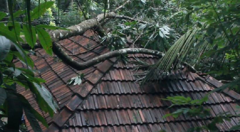 കിളിമാനൂരിൽ വീടിനു മുകളിൽ മരം വീണ് മേൽക്കൂര തകർന്നു