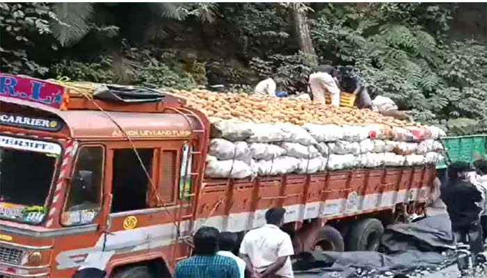 സംസ്ഥാന അതിര്ത്തിക്ക് സമീപം വലിയ കയറ്റത്തിലാണ് ലോറി മറിഞ്ഞത്. ഇതോടെ വാഹനങ്ങള്ക്ക് ഇരു വശത്തേക്കും പോകാന് സാധിക്കാതായി. ചുരത്തിലുടനീളം വന് ഗതാഗതക്കുരുക്കാണ് അനുഭവപ്പെട്ടത്. പൊലീസ് സ്ഥലത്തെത്തി.