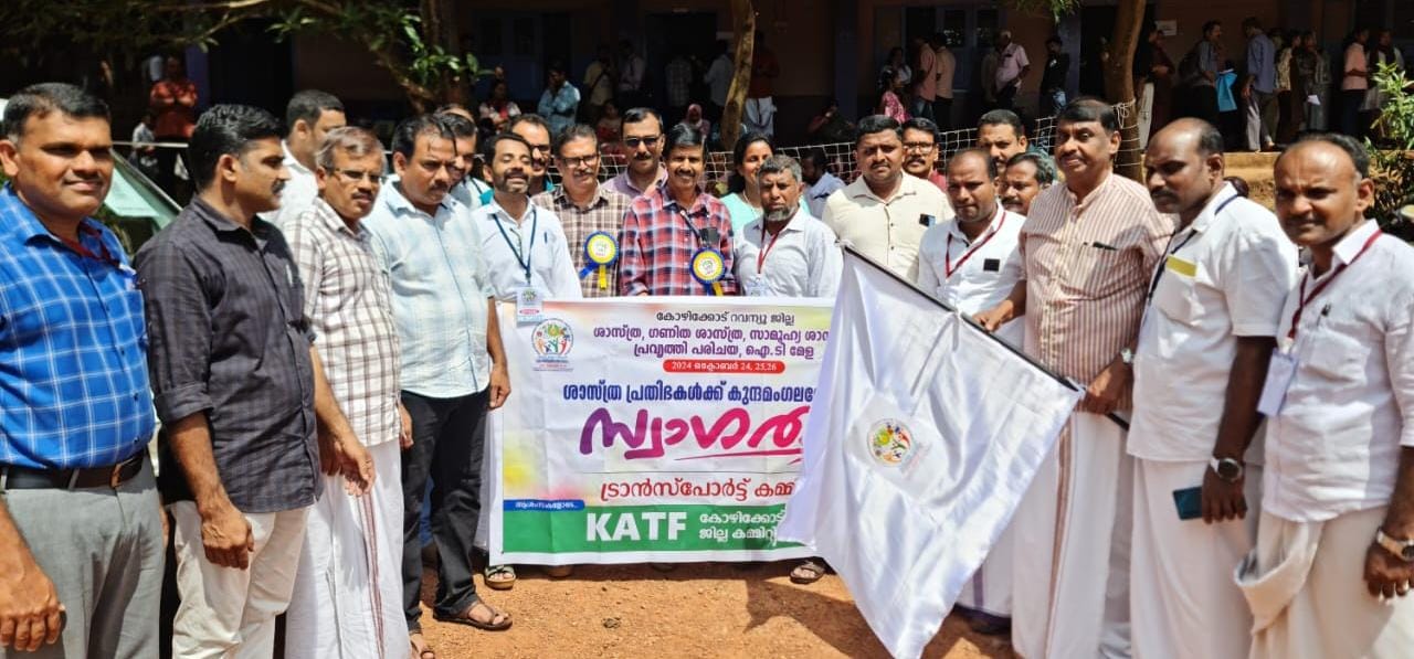 കുന്ദമംഗലത്ത് നടക്കുന്നജില്ലാ ശാസ്ത്രോത്സവത്തിന്റെ ഭാഗമായി ട്രാൻസ്പോർട്ട് കമ്മിറ്റിയുടെ വാഹനങ്ങളുടെ ഫ്ലാഗ് ഓഫ് കർമ്മം ബ്ലോക്ക് പഞ്ചായത്ത് പ്രസിഡന്റ് അരിയിൽ അലവി ഫ്ലാഗ് ഓഫ് ചെയ്തു. ട്രാൻസ്പോർട്ട് കമ്മിറ്റി ചെയർമാൻ നജീബ് പാലക്കൽ അധ്യക്ഷനായി. കോഴിക്കോട് ഡി.ഡി.ഇ സി. മനോജ് കുമാർ മുഖ്യാതിഥിയായി. കുന്ദമംഗലം എ.ഇ.ഒ കെ രാജീവ്, ഗ്രാമപഞ്ചായത്ത് അംഗം കെ.കെ.സി നൗഷാദ്, കെ എ ടി എഫ് സംസ്ഥാന സെക്രട്ടറി ഉമ്മർ ചെറൂപ്പ, ജില്ലാ പ്രസിഡൻറ് പി.കെ അബ്ദുൽ ഹക്കീം, ജനറൽ സെക്രട്ടറി എം കെ റഫീഖ്, ട്രാൻസ്പോർട്ട് കമ്മിറ്റി കൺവീനർ ജാഫർ കിഴക്കോത്ത്, മീഡിയ കമ്മിറ്റി കൺവീനർ പി.പി ഫിറോസ് , എ.സി അഷ്റഫ്, മുഹമ്മദലി പോലൂർ, കെഎംഎ റഹ്മാൻ, ഹാഫിസ്പുത്തൂർ, ആരിഫ് പാലത്ത്, കെ അബ്ദു റഊഫ് സംബന്ധിച്ചു.