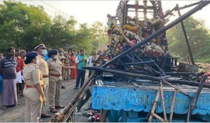 വൈദ്യുത ലൈനില് തട്ടിയ രഥം കത്തിയപ്പോള് പരിഭ്രാന്തരായ ജനം വെള്ളം ഒഴിച്ചത് അപകടത്തിന്റെ ആഘാതം കൂട്ടിയെന്ന് ഐജി ബാലകൃഷ്ണന് പറഞ്ഞു. തഞ്ചാവൂര് ജില്ലാ കളക്ടര് ദിനേഷ് പൊന്രാജ് ഒലിവര്, മുതിര്ന്ന പൊലീസ് ഉദ്യോഗസ്ഥന് വി ബാലകൃഷ്ണന് എന്നിവര് സംഭവസ്ഥലത്തെത്തി സ്ഥിതിഗതികള് വിലയിരുത്തി.