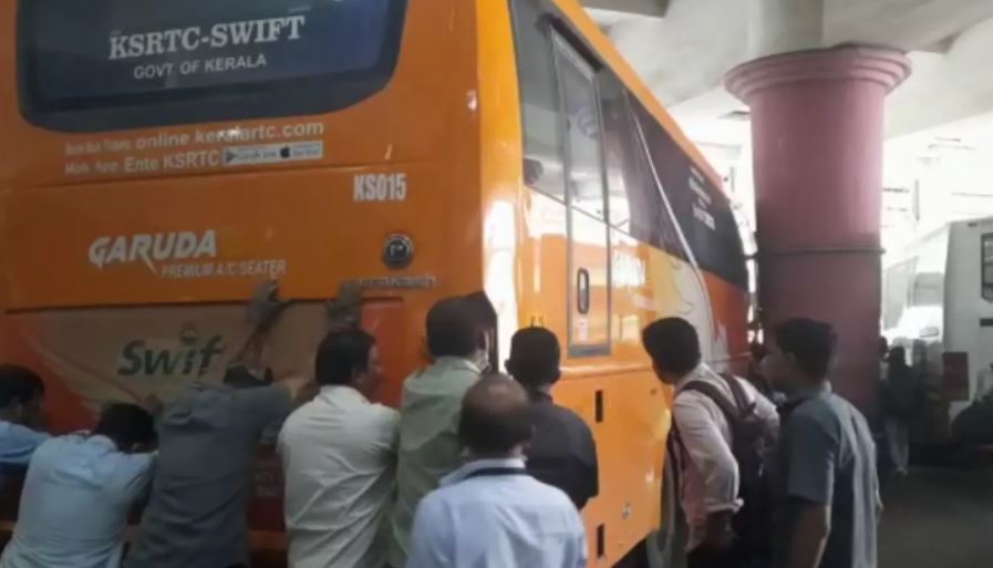 ബസ് പുറത്തേക്ക് നീക്കാനുള്ള ശ്രമം തുടരുകയാണ്. തൂണുകള്ക്കിടയില് ബസ് നിര്ത്തി ആളുകളെ ഇറക്കിയ ശേഷം ഡ്രൈവര് മറ്റൊരു വണ്ടിയില് പോവുകയായിരുന്നു. പിന്നീട് മറ്റ് ജീവനക്കാരാണ് ബസ് തൂണുകള്ക്കിടയില് കുടങ്ങിപ്പോയെന്ന് മനസ്സിലായത്.