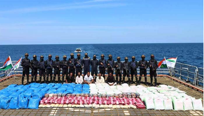 ചൊവ്വാഴ്ചയാണ് പോര്ബന്തറിന് സമീപം സംശയാസ്പദമായ സാഹചര്യത്തില് ഒരു ബോട്ട് ഇന്ത്യന് നിരീക്ഷണ വിമാനത്തിന്റെ ശ്രദ്ധയില്പ്പെട്ടത്. തുടര്ന്ന് നാവികസേനാ കപ്പല് ബോട്ടിനെ വളയുകയായിരുന്നു. മയക്കുമരുന്നിന്റെ ഉറവിടം കണ്ടെത്താന് പിടിയിലായ ബോട്ട് ജീവനക്കാരെ ചോദ്യം ചെയ്തുവരികയാണെന്ന് എന്.സി.ബി ഉദ്യോഗസ്ഥര് അറിയിച്ചു.