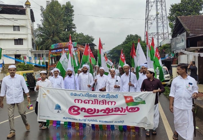 വിശ്വ പ്രവാചകൻ്റെ ജന്മദിനത്തോടനുബന്ധിച്ച് കുന്ദമംഗലം മഹല്ല് മുസ്ലിം ജമാഅത്ത് കമ്മറ്റിയുടെ നേതൃത്വത്തിൽ വർണ്ണശബളമായ ഘോഷയാത്ര സംഘടിപ്പിച്ചു.രാവിലെ പ്രഭാത നമസ്ക്കാരത്തിന് മുന്നോടിയായി പള്ളിയിൽ നടന്ന മൗലീദ് മജ്ലി സോടെയാണ് പരിപാടികൾക്ക് തുടക്കമായത്. പാത്താടി മഖാം സിയാറത്തിന് മഹല്ല് ജനറൽ സിക്രട്ടറി പി കെ അബ്ദുല്ല കോയ സഖാഫി പരിപാടികൾക്ക് നേതൃത്വം നൽകി. ഘോഷയാത്രക്ക് മഹല്ല് ഇമാം അബ്ദുനൂർ സഖാഫി, മഹല്ല് പ്രസിഡണ്ട് കെ അബ്ദുൽ മജീദ്, ഹാജി ട്രഷറർ കെ ഉമ്മർ ഹാജി, ഭാരവാഹികളായ ടി വി ഹമീദ് ഹാജി, എം കെ റഫീഖ്, അബ്ദുറസാഖ് ഹാജി, ഇ ഇമ്പിച്ച ഹമ്മദ് ഹാജി, കെ ജബ്ബാർ എക്സിക്യൂട്ടിവ് അംഗം പാത്താടി അബൂബക്കർ മാസ്റ്റർ, സൈനുദ്ധീൻ നിസാമി, അഷ്റഫ് സഖാഫി മഞ്ചേരി റസാഖ് മുസ്ലിയാർ, ആശ്വിഖ് ലത്തീഫി,അബ്ദുറഹിമാൻ സഖാഫി, അഷ്റഫ് സഖാഫി, മുസ്തഫ സഖാഫി, സുഹൈർ സഖാഫി, ഇ പി ആലി ഹാജി, എം കെ മുനീർ, മുഹമ്മദ് ആ മ്പ്രമ്മൽ, പി ശറീജ്, സുലൈമാൻ നിരവത്ത്, സി വി മുഹമ്മദ് ഹാജി എന്നിവർ നേതൃത്വം നൽകി.