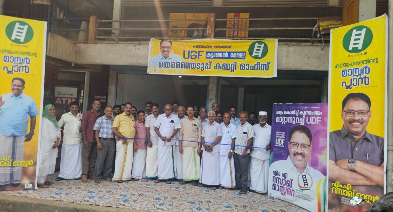 കട്ടാങ്ങൽ:ചാത്തമംഗലം പഞ്ചായത്ത് കട്ടാങ്ങൽ മേഖല യു ഡി ഫ് തെരഞ്ഞെടുപ്പ് കമ്മിറ്റി ഓഫീസ് ഉദ്ഘാടനം ജില്ലാ മുസ്ലിം ലീഗ് ആക്ടിംഗ് പ്രസിഡണ്ട് കെ എ ഖാദർ മാസ്റ്റർ നിർവ്വഹിച്ചു.