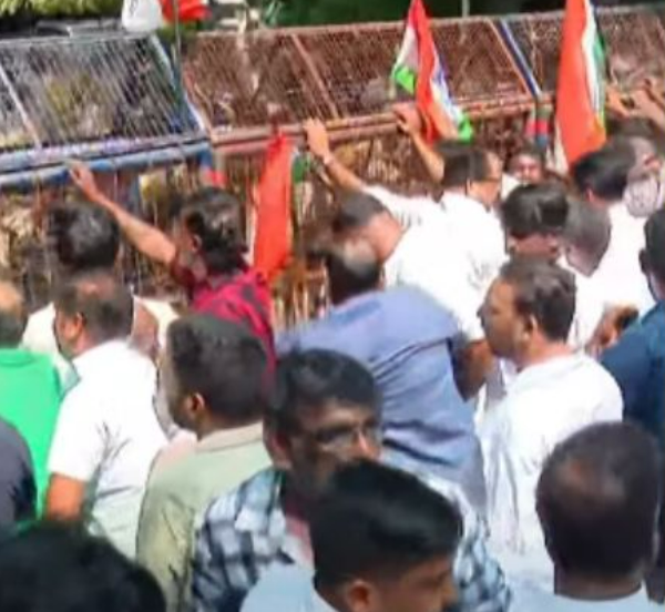 കോണ്ഗ്രസിന്റെ ബഹുജന മാര്ച്ച്; സംഘര്ഷം; ജലപീരങ്കി പ്രയോഗിച്ചു; വലിയ പ്രതിഷേധം