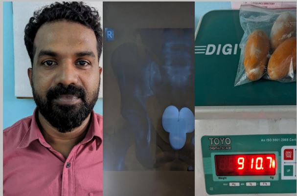 54 ലക്ഷം രൂപയുടെ സ്വർണം, 3 കാപ്സ്യൂളുകളാക്കി ശരീരത്തിനുള്ളില് ഒളിപ്പിച്ചു , എക്സറേ പരിശോധനയിൽ പണിപാളി