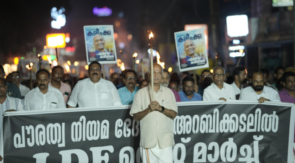 പൗരത്വ നിയമ ഭേദഗതി അറബിക്കടലില്; എല്.ഡി.എഫ് നൈറ്റ് മാര്ച്ച്